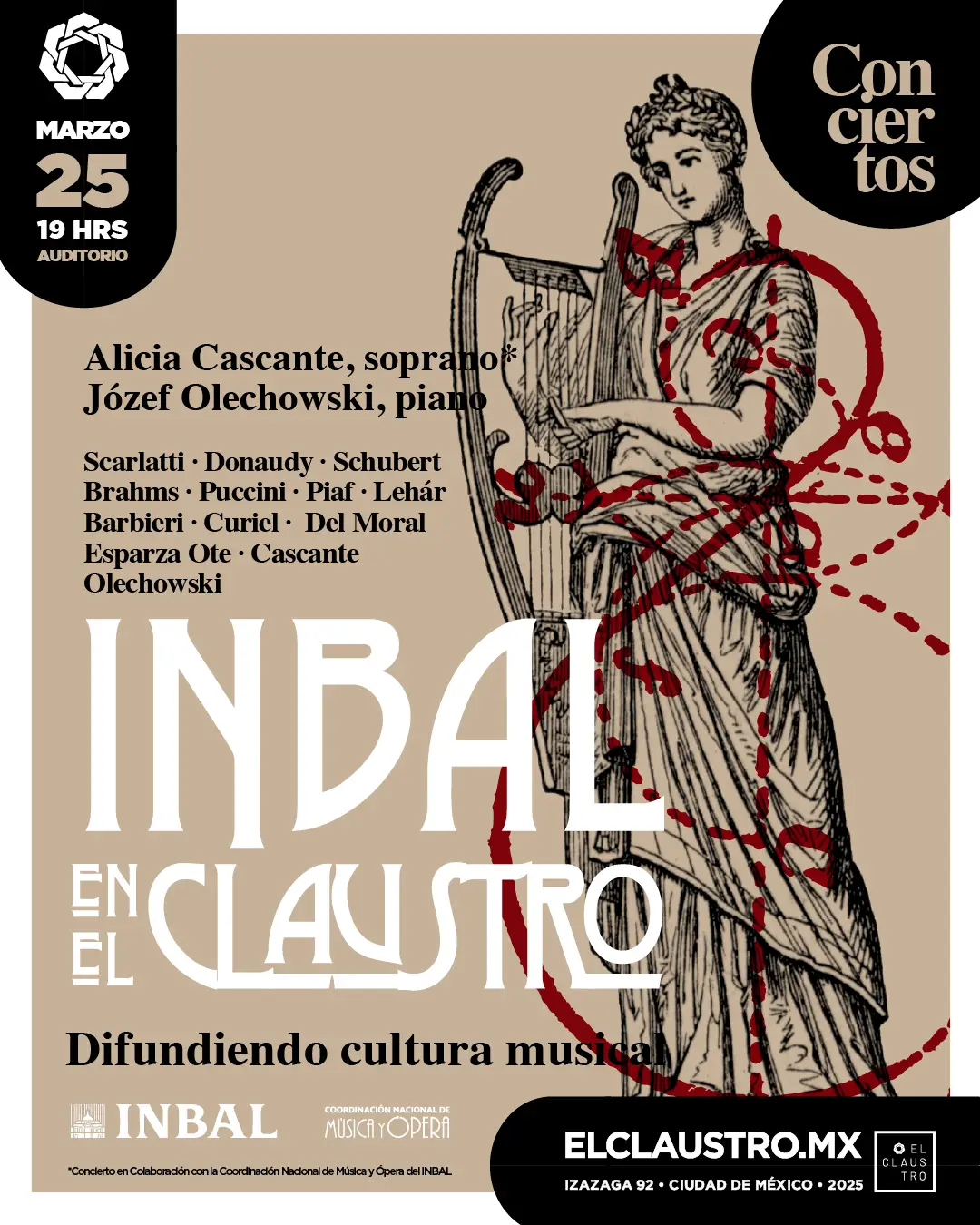 El concierto se realizará en colaboración con la Coordinación Nacional de Música y Ópera del INBAL.